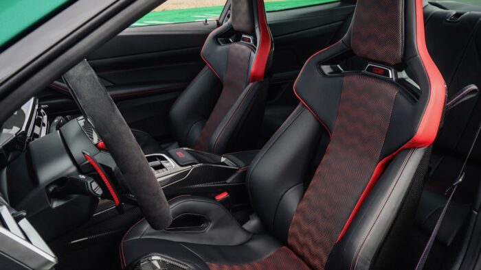 In terms of design it is easy to distinguish to this version of the “conventional”. It can be chosen with the exclusive BMW Individual colors Riviera Blue and Frozen Isle of Man Green Metallic, as well as other details. The kidney grille is frameless and features red contour lines, while the headlights have the yellow lighting accent instead of white, as already introduced on the M4 CSL. Inside you can see the M Alcantara steering wheel along with the M Carbon seats with an upholstery that combines black and red. The moldings are carbon fiber on a good number of surfaces.