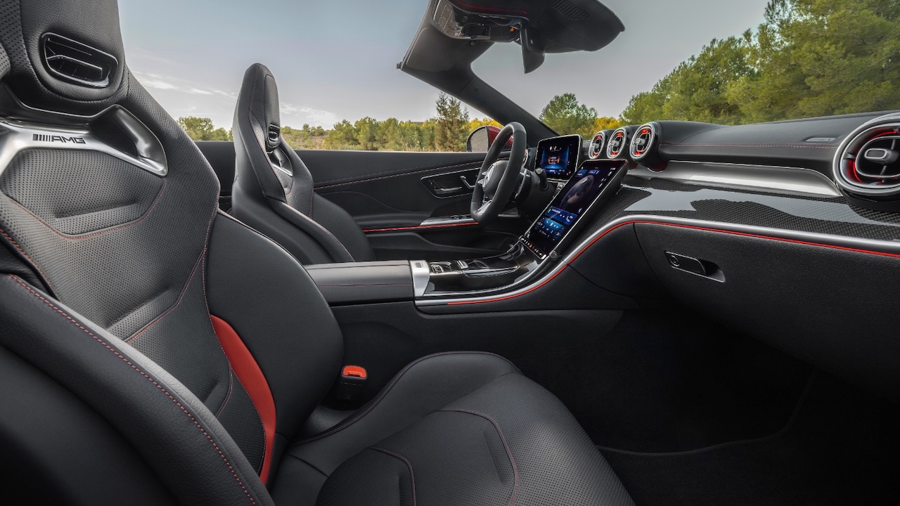 Not to mention that the convertible has the AMG Ride Control suspension with adaptively adjustable cushioning, which is customizable and offers exemplary precision. Furthermore, rear axle steering comes standard and everything could be completed with the optional AMG Dynamic Plus package. It has Race mode and outstanding equipment with specific elements on the outside and the AMG Performance steering wheel (among other things) on the inside.