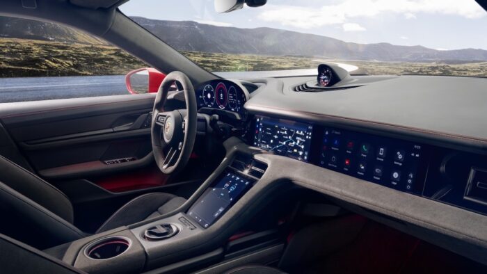 Compared to its predecessor, it gains more than 100 HP and also another hundred kilometers of autonomy thanks to the changes made with the model update. In short, the new Taycan GTS reaches 700 hp with Launch Control, thanks to new features such as the function push-to-pass of the Sport Chrono package (comes standard on the GTS). This allows them to deliver 95 extra HP for 10 seconds to ensure the best acceleration. Needless to say, this variant is all-wheel drive and its numbers are scary.