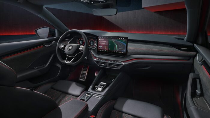 Under the hood, the new Skoda Octavia Combi RS is powered by the four-cylinder petrol engine, the 2.0 TSI with 265 HP and 370 Nm of maximum torque (between 1,600 and 4,500 rpm), sent to the front wheels via a seven-speed DSG dual-clutch automatic gearbox. It is a mechanical layout shared with models such as the Volkswagen Golf. The Cupra Leon Sportstourer, or the Golf Variant, two cars from the same group, are equipped with more powerful engines associated with all-wheel drive. It does not have any type of micro-hybridisation, which is why it obtains the C label.