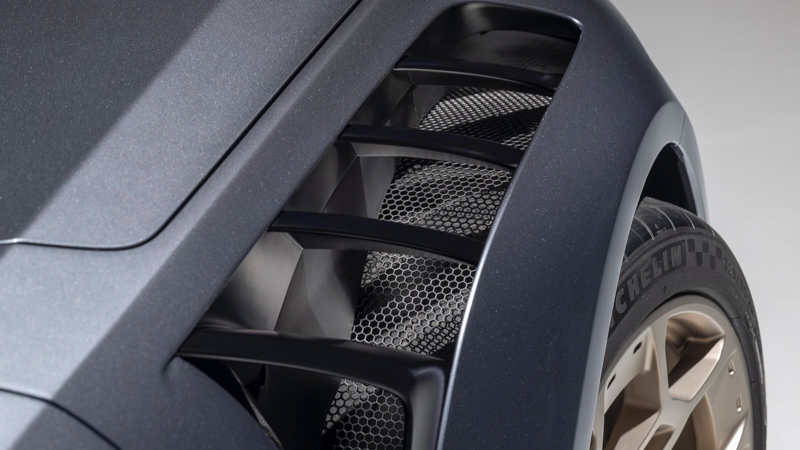 Road grip and stability are aided by 325-millimeter-wide front tires and 345-millimeter-wide rear tires mounted on forged aluminum wheels 20-inch wheels or optional forged magnesium rims. Behind them are Brembo carbon ceramic brakes, optimized for heat dissipation (aided by cooling ducts running under the rear suspension).