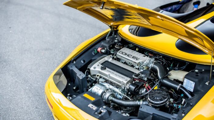Why didn’t Lotus go that route? It had been purchased by General Motors in 1986, which provided funds and an order: a sports car that would sell more than 5,000 units a year, in addition to working on projects such as the active suspension prototype of the Corvette C4 and the ZR1 version of that generation. With fresh money came a steel-frame chassis and lightweight fiberglass body…and front-wheel drive.
